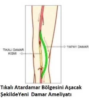 3-Bypass cerrahisi (tıkanan damar bölgesini aşacak şekilde yeni atar damar oluşturulması).